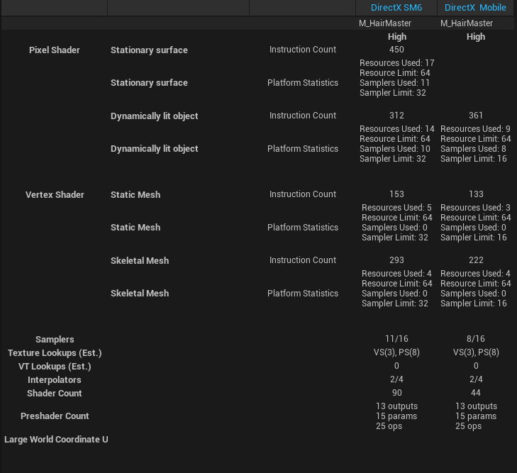 I created a dedicated hair master material for Shadows of Dawn for both player characters and NPCs. It is built on alpha cards using anioscoptic shading to capture realistic lighting behaviors of highlights, allowing for realtime hair rendering with alpha soprting and per=strand color variation.
