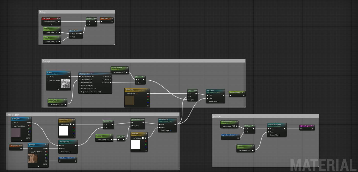 This master material was built with the goal of being able to manage the majority of our in-game assets in one place. Essentially, the idea was, "One master to rule them all". It was designed to minimize material slot overhead while providing our artists full control through instanced parameters. It also featrues a Runtime Virtual Texture (RVT) material function for seamless blending with the landscape. Assets read the depth and color data from the landscape at runtime and eliminate harsh edges without the need for manual painting.