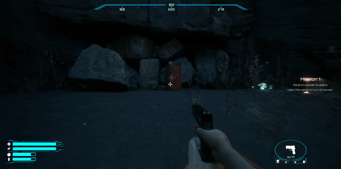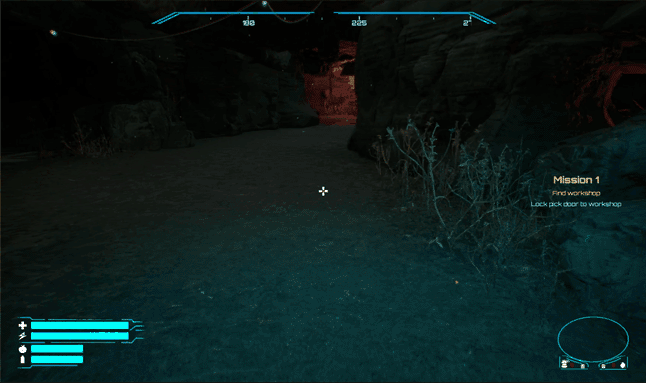 When we began concepting ideas for the tutorial level of our Alpha we had a few small environments that our artists had made for some promotional material while we were still in early prototyping. We determined that the most sensible way to begin building our open-world would be to use one of these environments as a jumping off point and repurpose it for our new direction. Our Art Lead and I got together to review the three environments; a cave setting, a wooded encampment, and a crumbled overpass. We came to the conclusion that based on our current storyline it made most sense to repurpose the cave setting into a hybrid cave system and sci-fi science bunker. Exploring this setting would give us the opportunity to build up to revealing the state of the world to the player and pace out some of our game's systems without overwhelming the player.